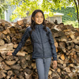 The TemTeq Equestrian Kenora Hybrid Jacket is crafted with a lightly quilted front and back with stretch side panels for added range of motion in the saddle. Features a stand collar with a 2-way front zipper and front pockets with zippers for added security. Slightly longer in the back for added coverage.