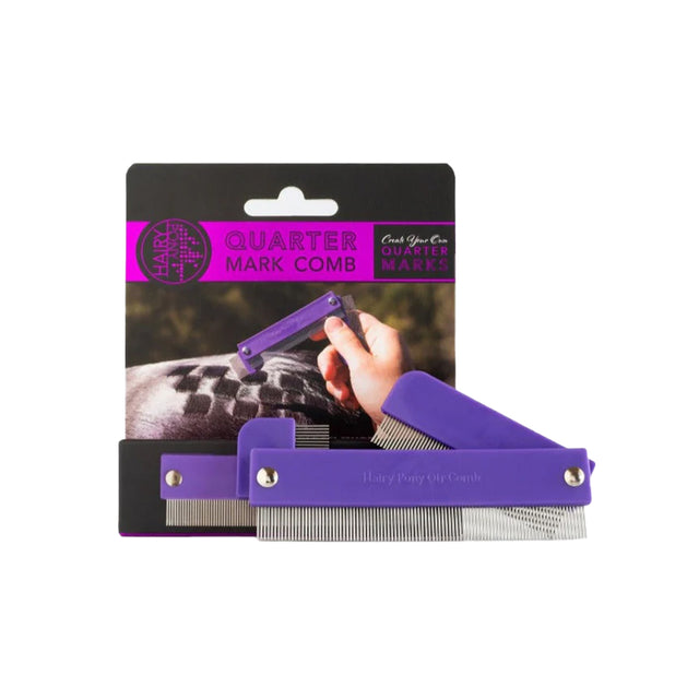 The perfect tool to create crisp, clean quarter marks in 3 distinct sizes. Featuring super-fine, stainless steel teeth to ensure you are not left with lines in your patterns, or broken & bent teeth. The distinctive purple colour makes the Hairy Pony Quarter Mark Horse Comb easy to find in your tack box. The small comb measures 2.5 cm, medium 6.5 cm & large 10 cm. Easily create your signature look today!