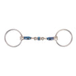 Created from blue sweet iron to help encourage salivation, the Bombers Loose Ring Elliptical Dressage Control Bit helps to prevent the horse from using its tongue to push against the bit. Featuring an ergonomically shaped mouthpiece and a flat lozenge joint to help provide softer tongue pressure. The double-jointed mouthpiece facilitates movement in the horse’s mouth to help encourage bit acceptance. The blue sweet iron oxidizes easily and offers a warm, sweet taste for your horse.