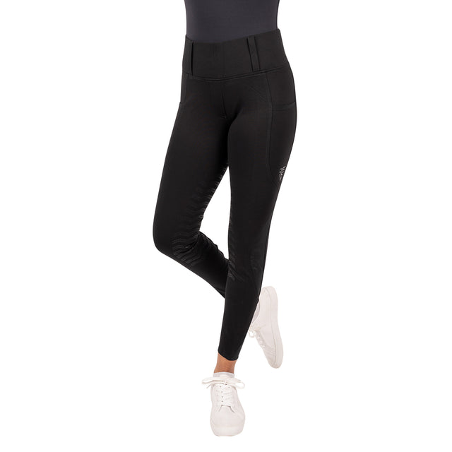 The Elation Red Label Sport Full Seat Winter Tight offers convenience on chilly days with a fleece backed pull on style that features a faux fly, wide waistband, belt loops and two deep pockets for convenience. Complete with a silicone full seat to help provide added grip in the saddle, 4-way stretch, and a water repellent construction.