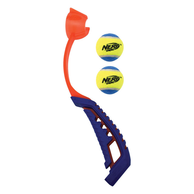 The Nerf Dog Air Strike Thrower provides hands-free pickup while playing fetch with your pup. Perfect for use at the park or in the backyard and offers a lightweight and flexible design for comfort. Comes with two launcher compatible balls.