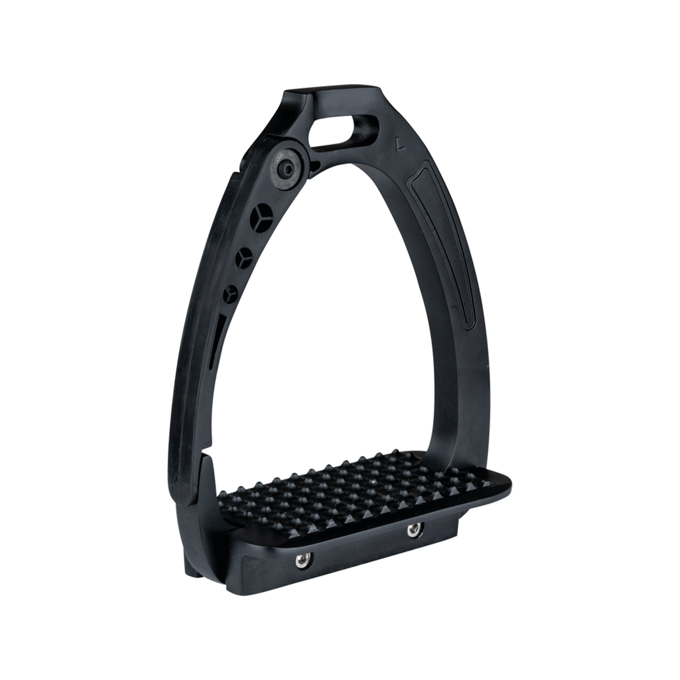 Made of high-quality aluminum with a 6.5 cm wide and 12 cm long tread. Features a hinge on the outside. The rider's weight causes the hinge to open in the event of a fall and prevents it from getting caught in the stirrups.