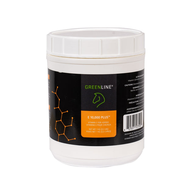 Greenline is the leading supplementation program at racetracks and competitive barns across Canada. Greenline E 10000 helps to maintain normal muscle function. This supplement provides antioxidant protection to body tissue, specifically cell membranes, enzymes and other intracellular substances. Greenline E 10,000 Plus contains 10,000 IUs of Vitamin E per 30 g dose. Proudly manufactured in Canada. Packaged in a convenient resealable tub.