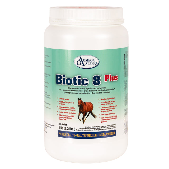 Omega Alpha Biotic 8 Plus is a multi-strained probiotic that helps to promote a healthy digestive tract and gut flora. Biotic 8 Plus contains 9 species of probiotics with 16.5 billion CFUs per scoop. Contains no corn, dairy, gluten, soy or wheat.