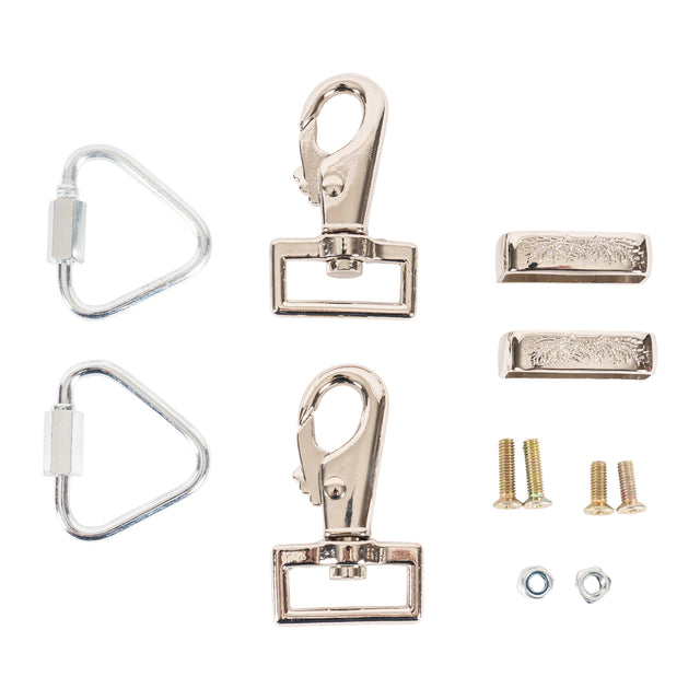 - Set includes 2 D-rings, 2 quick release clips, and screws for assembly