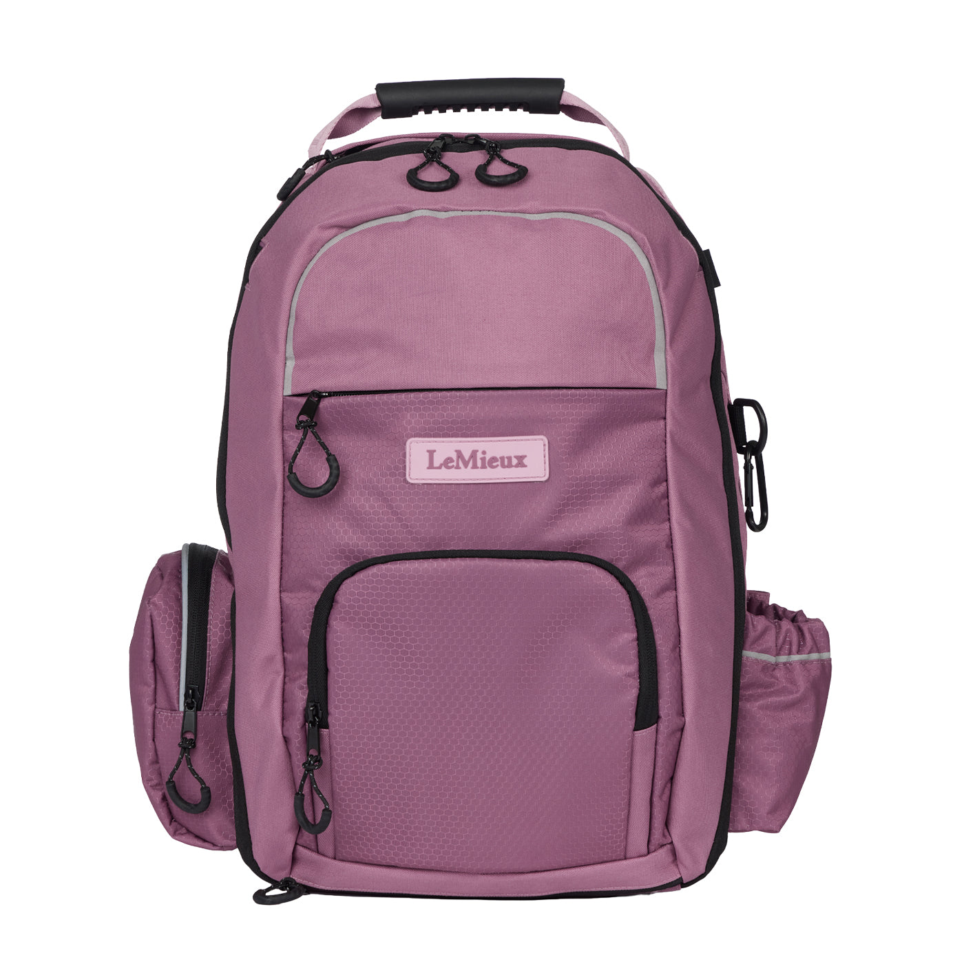 The LeMieux Pro Backpack is essential for any rider. Designed by equestrians with a range of convenient features suited to your riding lifestyle. A tuck-away riding hat holder, rain cover, whip loop and clips for attaching carabiners, as well as several zipped pockets, keep all your accessories organized. The water-repellent base is tough enough to put down anywhere - perfect for travelling and on the yard. Made with durable ripstop panels and reflective safety strip detailing to catch the eye in low-light conditions. Finished with ergonomic padded shoulder straps.