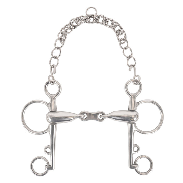 The EvoEq Hollow Mouth French Link Pelham Bit is designed to combine the effects of a snaffle and curb to help encourage the horse to bend at the poll through pressure applied by the curb rein. Constructed from quality stainless steel for optimal durability. Complete with a double jointed French link hollow mouthpiece, pelham cheeks, and curb chain.