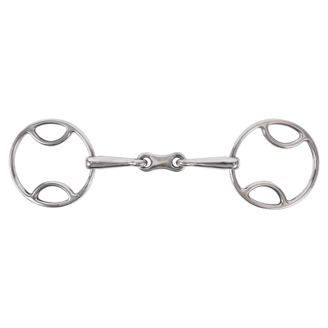 This bit helps to offer a mild lever action. When the bit is engaged, the cheekpieces tilt forward and lift the mouthpiece up, causing the horse to feel simultaneous pressure on both the poll and the mouth. French link mouthpiece helps provides a more even pressure across the tongue. Crafted in stainless steel and featuring balanced cheekpieces to help offer optimal comfort.