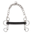 The Metalab Tom Thumb Mullen Mouth Rubber Pelham Bit is designed to combine the effects of a snaffle and curb, helping to encourage the horse to bend at the poll through pressure applied by the curb rein. Crafted from a premium quality stainless steel for optimal durability and featuring a soft rubber covering on the mouthpiece for enhanced comfort. Featuring shorter shanks than a typical Pelham and complete with a curb chain.