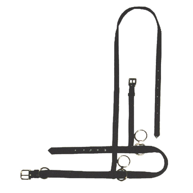 The Gaitmaster Double Ring Headhalter includes two rings for headpole attachment, and one ring for a tie down. Made from heavy duty, durable nylon. Buckle adjustable at the crown and nose.