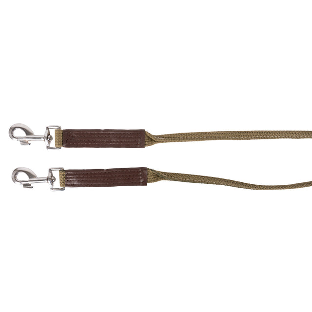 The Cotton Web Driving Lines are a great choice for long lining reins, training a young horse, or helping an older horse with straightness. These driving reins are made from durable cotton webbing with a sure grip handhold and rugged, reinforced snap ends. Each rein is partially rounded to allow easy use with a surcingle. Sold as a pair. Each line measures 12'6"/381 cm L.