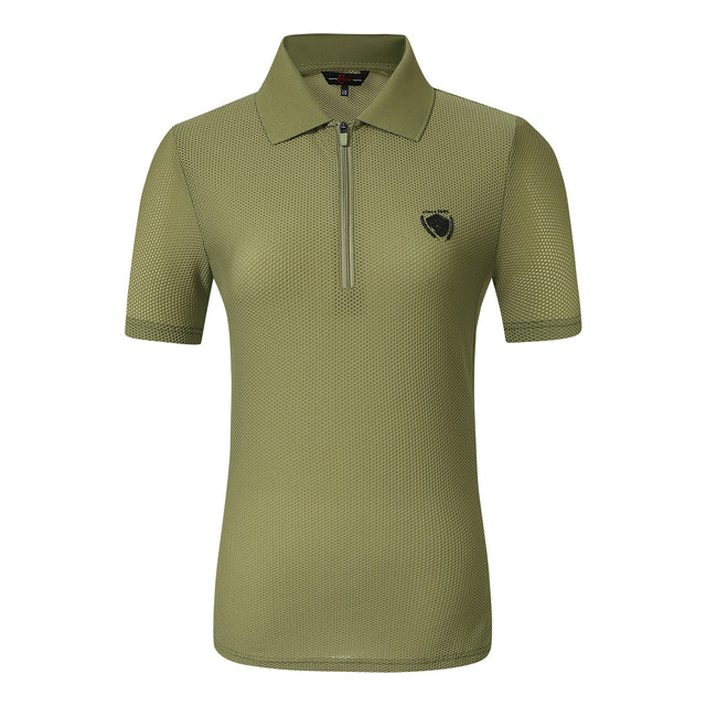 The Covalliero Polo Shirt is made from polyester fibres, combined with elastic textile inserts at the side. Features pique mesh for added breathability, a zip closure, and feminine fit. Moisture-regulating and lightweight.