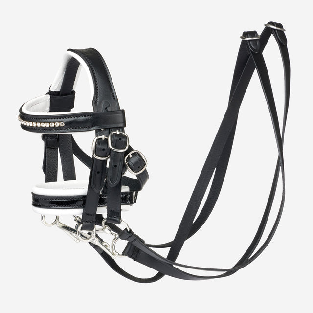 This incredibly detailed replica double bridle is perfect for little dressage riders to practice tacking up their LeMieux Toy Pony. A real leather dressage bridle made by the same leather workers who craft LeMieux's performance bridles, this authentic miniature has functional buckles so you can find the perfect fit for your very own LeMieux Toy Pony. Just like a real dressage bridle, it has a snazzy crystal browband and a shiny black patent noseband with soft white leather padding. All the accurate details are in place, even down to the double bit, with a Weymouth, a Bradoon and double reins. Suitable for ages 3+.