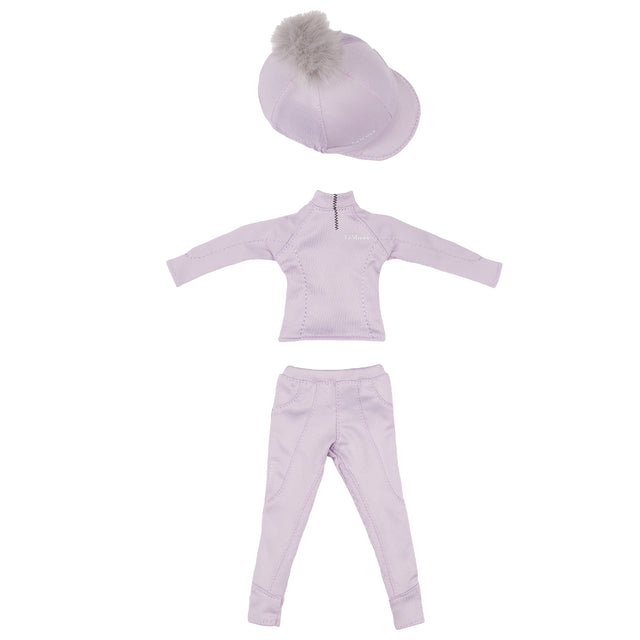 Toy rider-sized replicas of authentic LeMieux clothing for your favourite LeMieux Toy Rider dolls. Set includes matching breeches, a base layer and a helmet cap. Removable and adjustable clothing with hook and loop closures. Collect your own mix and match sets!