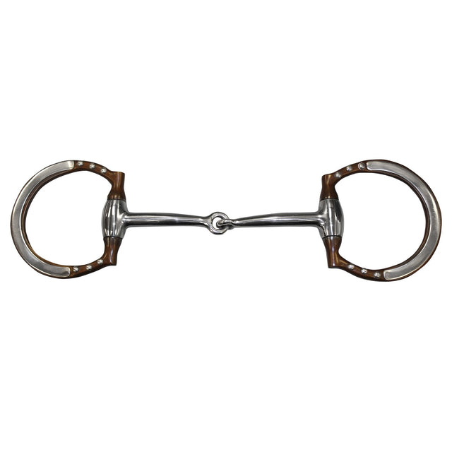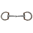 The Metalab Antique Copper Offset Dee Ring Bit W/ Overlay features a single jointed, slightly curved, stainless steel mouthpiece. The single jointed mouthpiece creates tongue pressure. The dee ring cheeks will not slide through the horse's mouth. The offset dee applies pressure to the lip on the opposite side of the horse's mouth when the rein is pulled making it a great choice for horses who struggle with steering or connection through turns. Cheeks are made from copper and have eye-catching stainless steel detailing. Direct action bit without leverage.