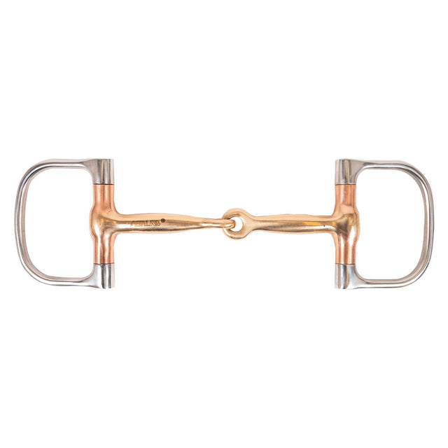 Metalab’s Racing Dee Bit helps to provide lateral guiding while also preventing the bit from being pulled through the mouth. Racing dees are slightly smaller than traditional dee rings. The copper mouthpiece helps to encourage the horse to salivate and is warmer to the touch.