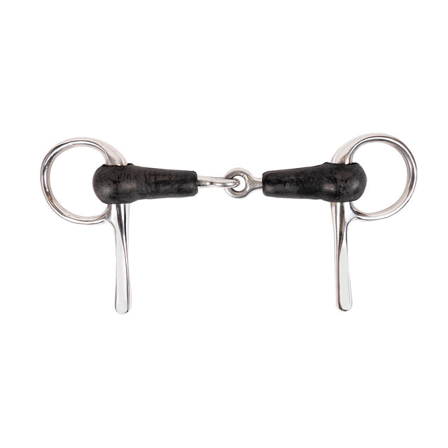 The Half Cheek Snaffle bit is a relative of the full cheek snaffle and helps to improve lateral action on a direct rein by putting pressure on the horse’s face when the rein is engaged. The Half Cheek Snaffle bit only has its lower arm and offers a spoon-shaped appearance. The half cheeks help to prevent the bit from sliding through the horse’s mouth and the arm extends towards the horse’s jaw to help keep it in place. Complete with a rubber mouthpiece with a stainless steel core for optimal durability. The Half Cheek Snaffle Bit if often used on driving or racehorses.