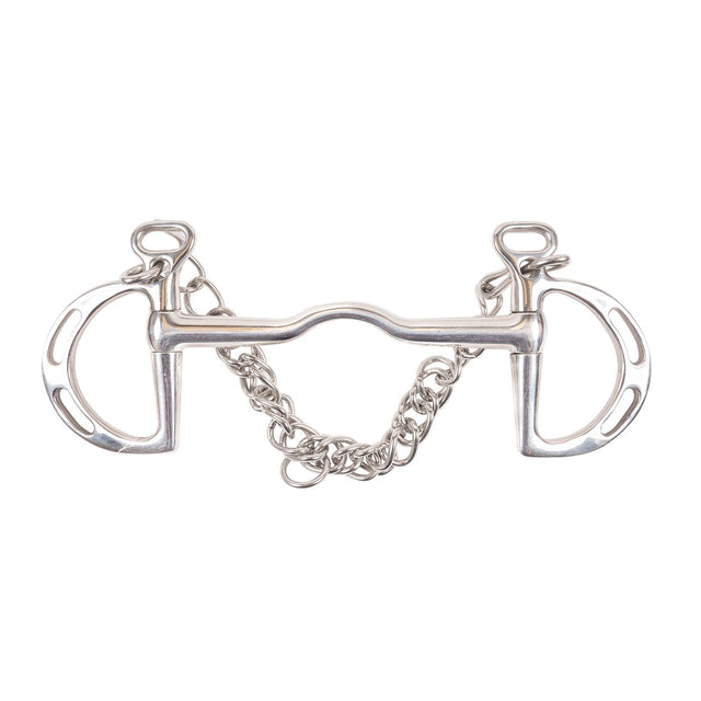 Crafted in stainless steel for long lasting durability, the Metalab Kimberwick Bit w/ Low Port is designed to combine the effects of a snaffle and curb bit. Featuring a low ported mouthpiece to help provide tongue relief. The d-shaped cheeks provide the choice to apply pressure to either the horse’s tongue or, chin and poll depending on the placement of the reins.