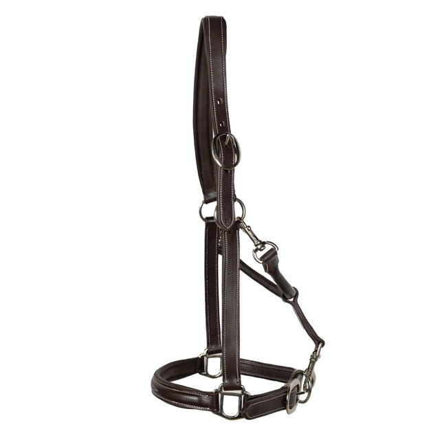 Made from beautiful, supple, European leather with fancy stitching at the nose and cheek. Features a padded nose and cheek design adding elegance for wear around the horse show. Fully adjustable at the crown and chin and complete with a snap closure for easy on and off.