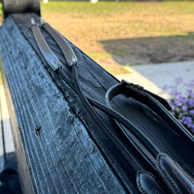 The Ace Equestrian Com4rt Stretch Draw Reins feature a leather and bungee construction to allow balance as needed. Complete with durable snap ends for easy connection to the girth or breastplate.