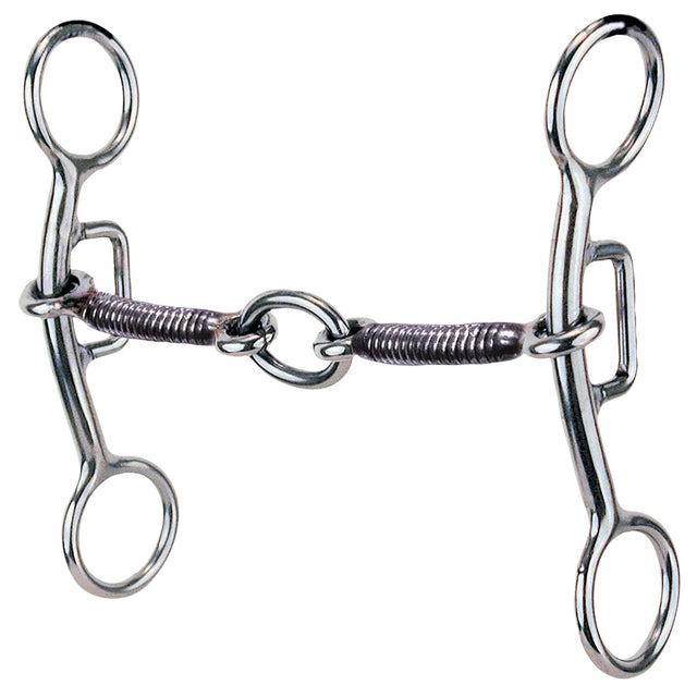 Designed for horses with sensitive mouths that need light to medium control, this top-selling transition bit is designed for introducing indirect control of leverage from the shank and pressure from the curb chain. Works off tongue, lips, and bar pressure. Ideal for both the leisurely ridden horse and performance horse that is soft, supple, and doesn’t require much leverage. Designed by National Cowgirl Museum Hall of Famer, Sharon Camarillo. The three-piece mouthpiece aids in the prevention of the “nutcracker” effect across the horse’s bars, while the wrapped mouth provides a slight “bite” for added control. Made of sweet Iron, which will rust and promote salivation to make a more supple-feeling mouth.