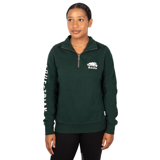 A classic sweatshirt with equestrian style! The Roots Equestrian Original Stein Zip Sweatshirt combines everything you love about Roots with equestrian detailing. The Roots Equestrian Original Stein Zip Sweatshirt features a ¼ zip front with ribbed cuffs and bottom hem. Complete with the Roots logo on the chest and Equestrian logo down the sleeve. Perfect for lounging around the house with its comfortable construction.
