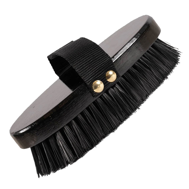 The body brush is ideal for adding that extra shine and finish to your horse. The sleek black backing with strap provide a clean look to the brush. The dense bristles remove any extra dust and dirt on your horse while being soft enough to use on the face and legs.