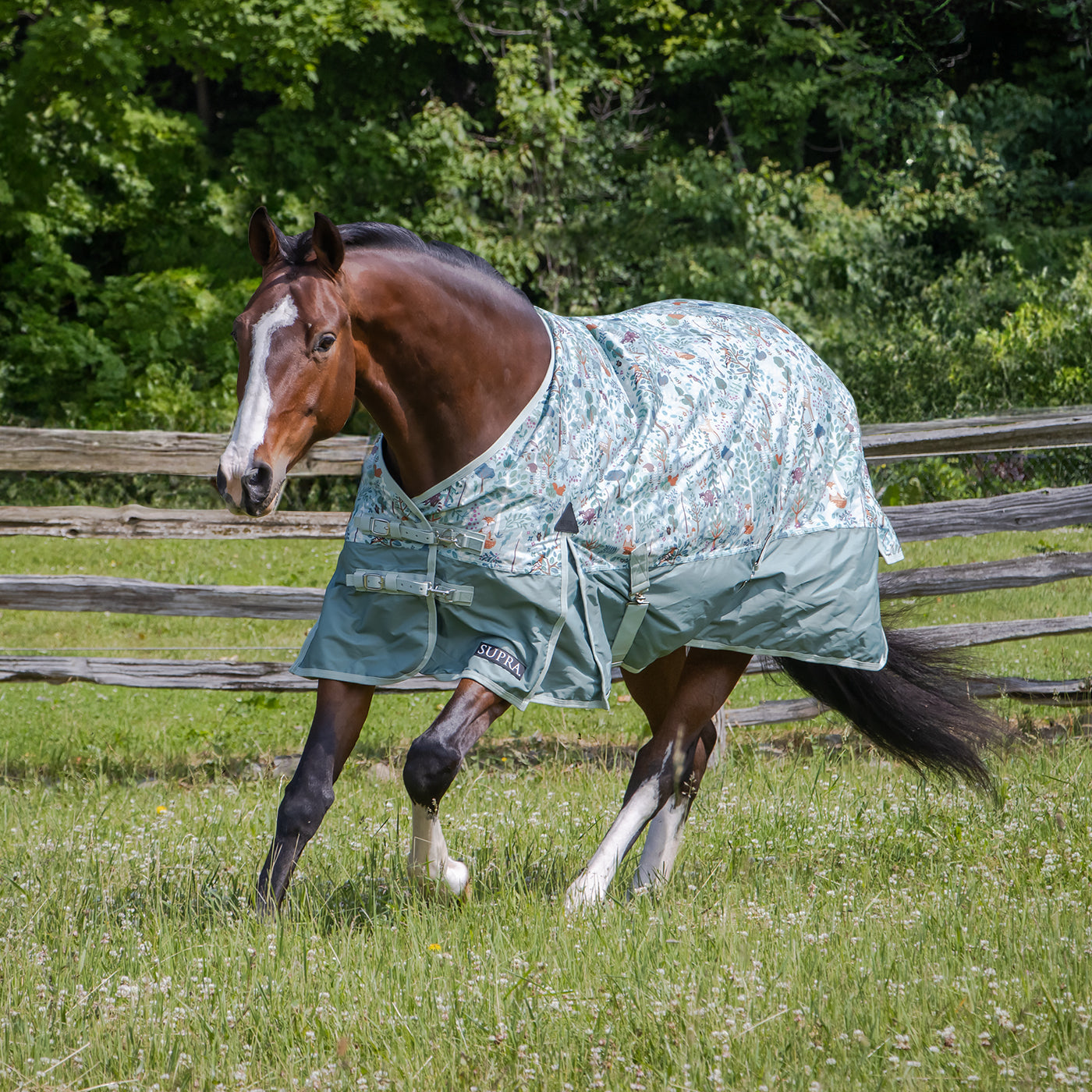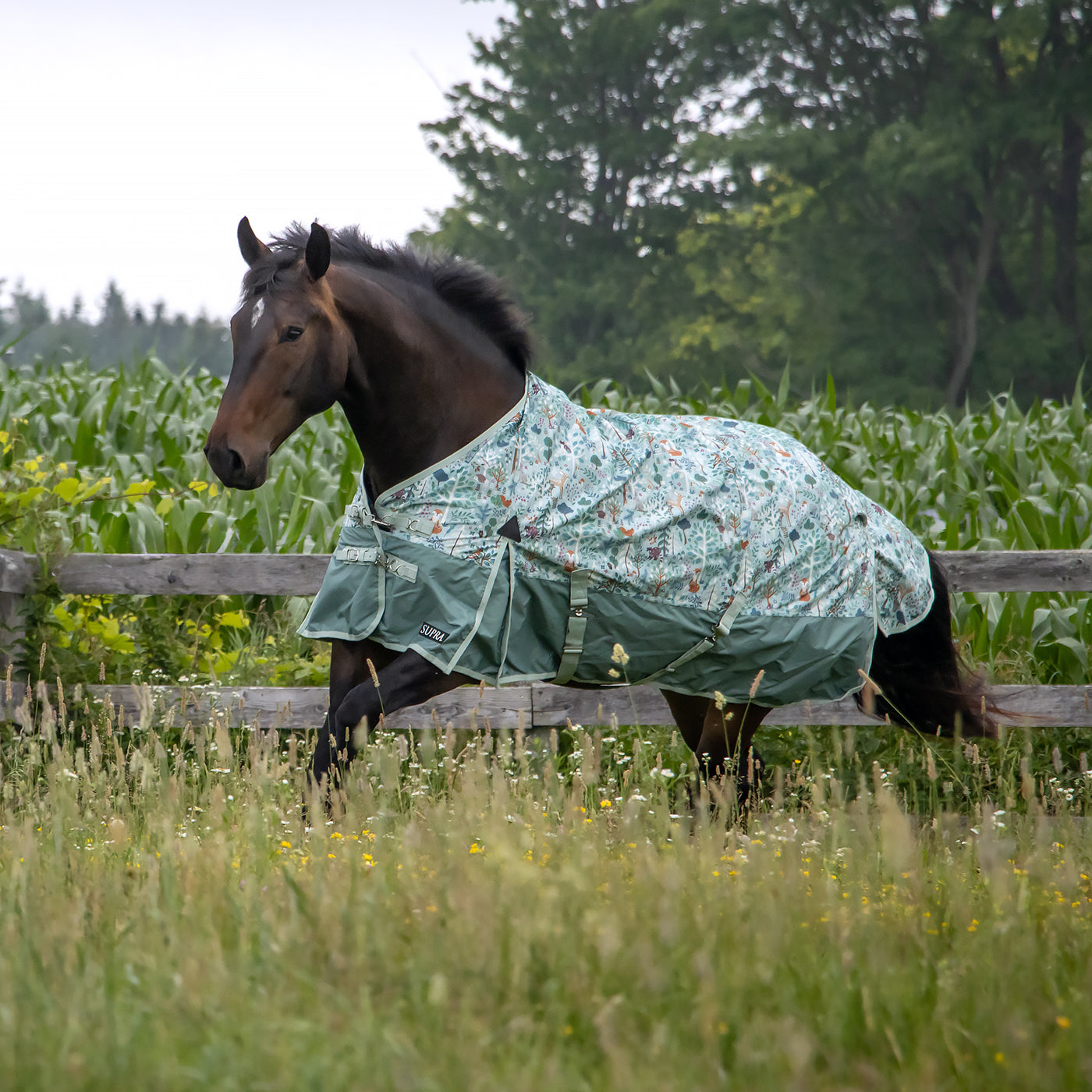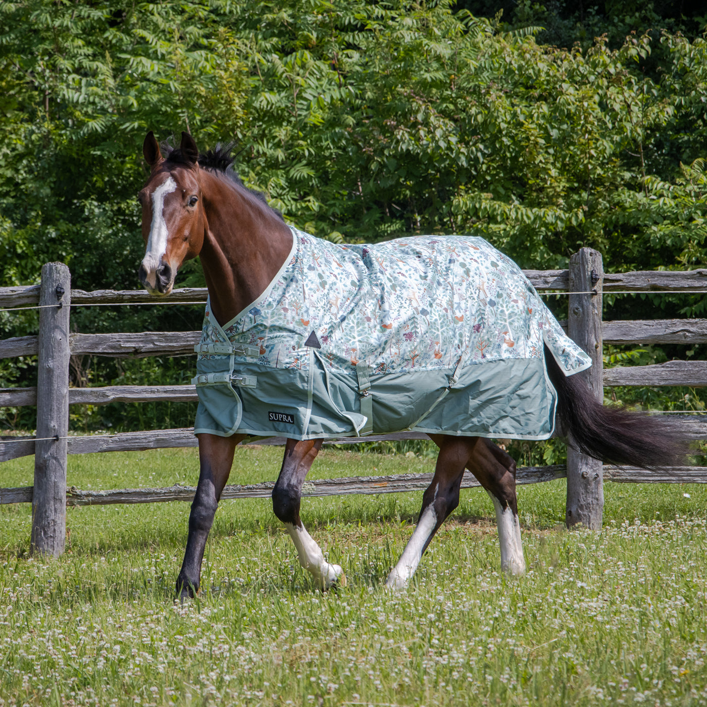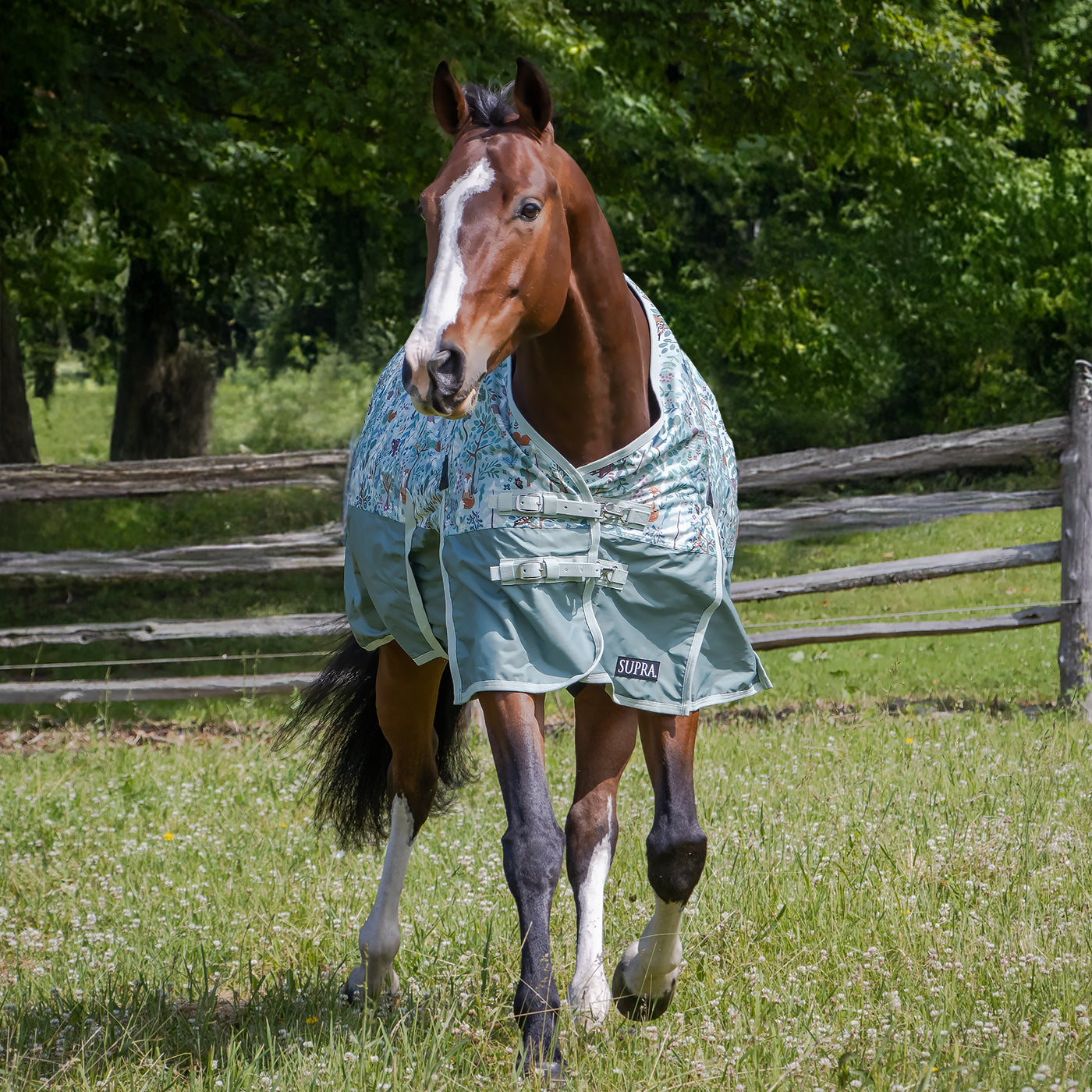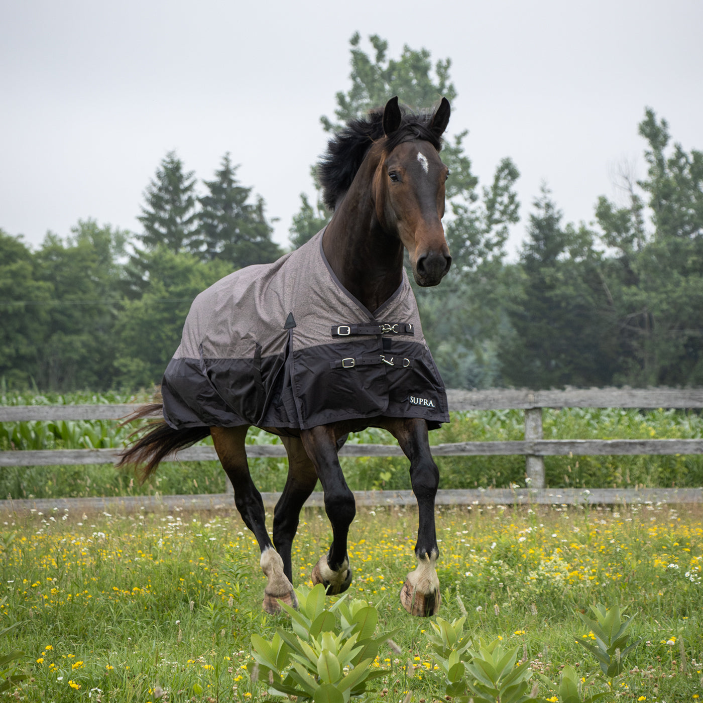 The Supra Rainsheet offers best-in-class protection against the elements! Features a waterproof and breathable construction with no back seams. Made with a 210 denier nylon lining and 600 denier exterior to help keep your horse comfortable and dry. Complete with cross-biased surcingles, double front buckle closures, and adjustable leg straps.