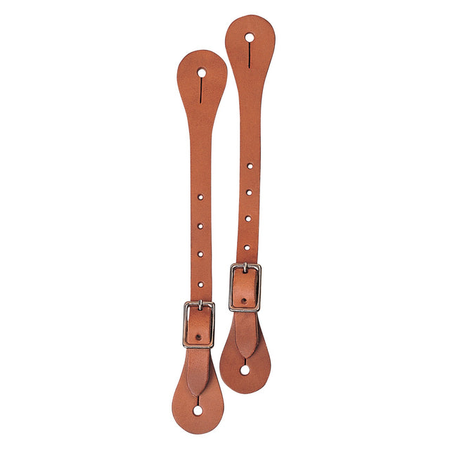 The Weaver Western Spur Straps are all about going back to the basics. These high quality spur straps are made from single-ply bridle leather with durable nickel plated buckles. Great basic western spur straps that perform as well as they look. Sold as a pair. One size fits most.