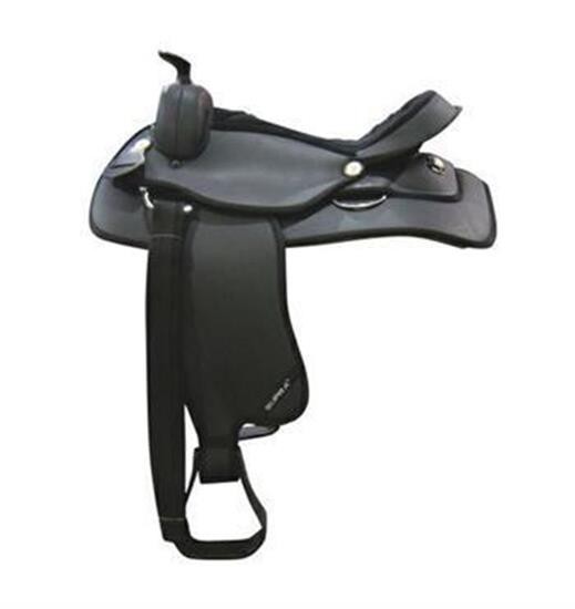 A comfortable and practical synthetic western pleasure saddle, the Supra Synthetic Western Saddle is extremely lightweight (only 5.9kg!) with a plastic cantle and plastic stirrups. Durable poly seat features decorative stitching for added flair. Two back dee rings accommodate a back cinch (not included). Easy to clean, simply wipe down with a damp cloth. Lightweight nylon cinch strap and cinch included.