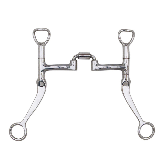 The Myler Flat Shank Bit W/ Correctional Low Port features an MB 27PB mouthpiece. The MB 27PB is a Myler correctional mouthpiece, which is a ported mouthpiece that collapses onto the outer lip and bars, and rotates on to the tongue. The port although narrow and somewhat low, allows room for the horse’s tongue to pass under the bit. When the reins are engaged and the mouthpiece rotates on to the tongue, it applies two concentrated points of pressure on the tongue for quick control. Because this port is only 1 ¼" high, it will apply little to no palate pressure. Sweet iron mouthpiece oxidizes and encourages salivation. The 7" Flat Shank is stainless steel and curved slightly back towards the horse, with a flat-top purchase and a rein ring. The mouthpiece has a fixed attachment. The Flat Shank has the patented Independent Swivel Cheek where the purchase, mouthpiece, and shank all move independently of each other. The purchase is slightly angled away from the cheek to avoid rubbing. It has an indirect (curb) rein action designed to be used with a curb strap which attaches to the purchase. The Flat Shank uses the combination of the fixed cheek and fixed rein to apply pressure to the mouth, chin, and poll. Indirect action with moderate leverage. Myler Level 2 to 3.