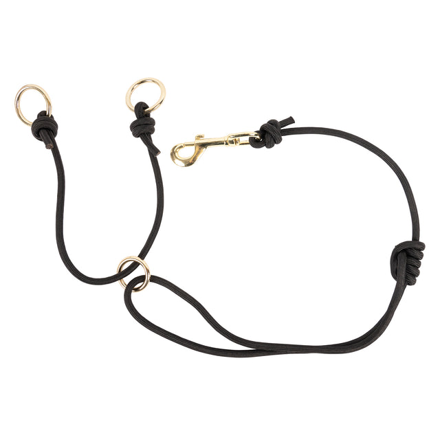 Fourche d'entraînement fabriquée en polyéthylène tressé rond de 5/16 po avec quincaillerie plaquée laiton. Livrée avec mousqueton pivotant pour une fixation facile à la sangle de votre cheval.