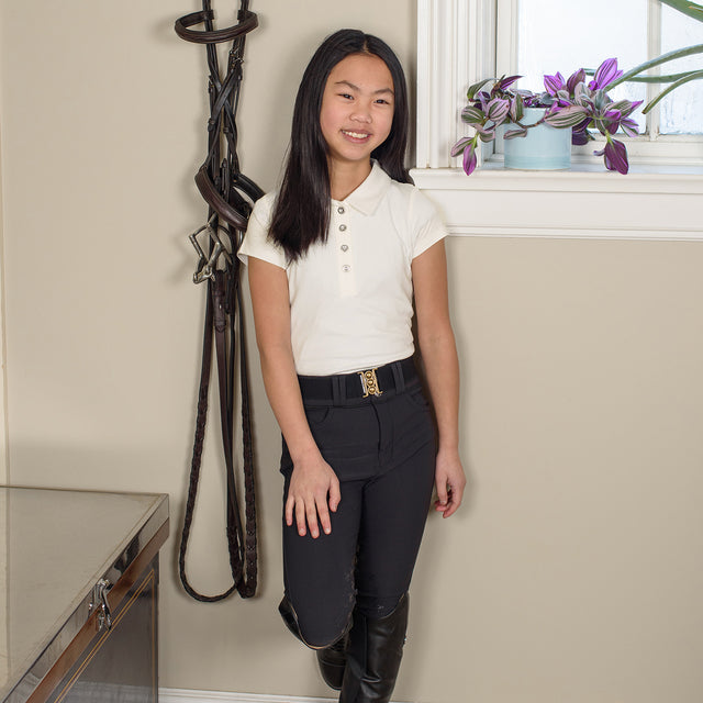 Polo pour enfant au style classique, parfait pour rouler. Ce polo doux et extensible est composé d'un mélange de 95 % de coton et de 5 % d'élasthanne pour fournir juste ce qu'il faut d'élasticité. Doté du logo Aerion sur la poitrine, ce haut en jersey de coton léger offre un confort optimal pour devenir un haut d'équitation incontournable.