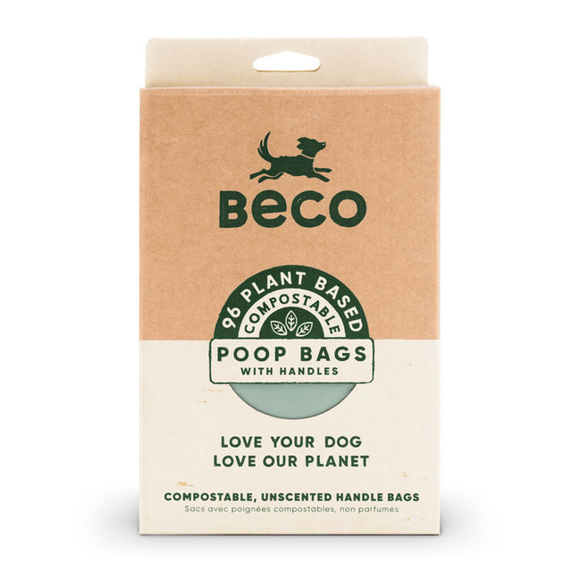 Sacs à crottes compostables non parfumés avec poignée Beco - Paquet de 96