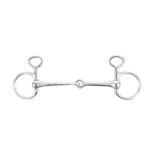 Un mors en acier inoxydable adapté à la plupart des disciplines. Le mors Baucher est défini par la barre métallique qui s'étend vers le haut depuis l'anneau du mors et se fixe à la joue tandis que les rênes se fixent à l'anneau du mors inférieur.
