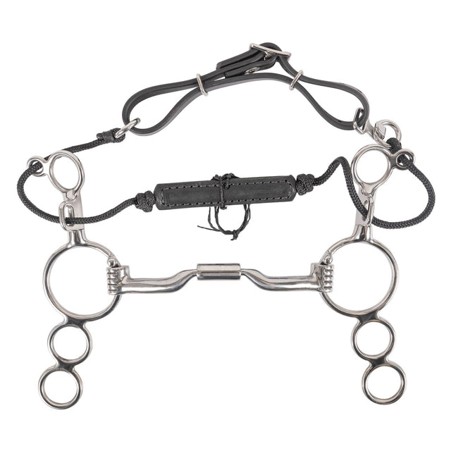Fabriqué en acier inoxydable durable et doté d'un embout buccal en fer doux pour favoriser la salivation, le mors combo Myler à trois anneaux avec port bas est une combinaison unique d'un mors à anneaux, d'un mors à tige et d'un hackamore. Utilisant cinq points de pression différents pour aider à disperser la pression des rênes, les branches à trois anneaux offrent un choix d'emplacement pour le placement des rênes afin d'offrir un effet de levier accru. Ce mors est doté de l'embouchure MB 04. Le MB 04 est similaire au MB 02 en ce sens qu'il tourne sur la langue et applique une pression sur la langue. Cependant, il dispose d'un petit orifice (¼") qui apporte un certain soulagement de la langue au cheval. L'orifice permet au cheval d'avaler et de bouger sa langue lorsqu'il avance et se détend, ce qui agit comme une libération ou une récompense. L'embouchure est courbée et s'enroule autour des barres et des lèvres au lieu de pincer. Complet avec une muserolle en cuir plat, des côtés en cordon noué et une mentonnière durable pour aider à fournir un ajustement optimal.