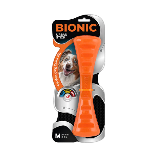Le Bionic Urban Stick est un jouet à mâcher interactif et résistant aux mordillements les plus intenses. Doté de deux compartiments pour les friandises, il rend le moment de mastication de votre chien plus stimulant, plus amusant et le fait remuer la queue. Grâce à sa conception brevetée et à son caoutchouc bionique (formulé sans substances nocives comme le BPA, le plomb et les phtalates), le Bionic Urban Stick offre une durabilité inégalée pour les mordillements intenses. Vous pouvez même remplir les extrémités de beurre de cacahuète et les placer au congélateur. Une fois congelé, profitez-en pour un moment de gourmandise extra-long et stimulant !