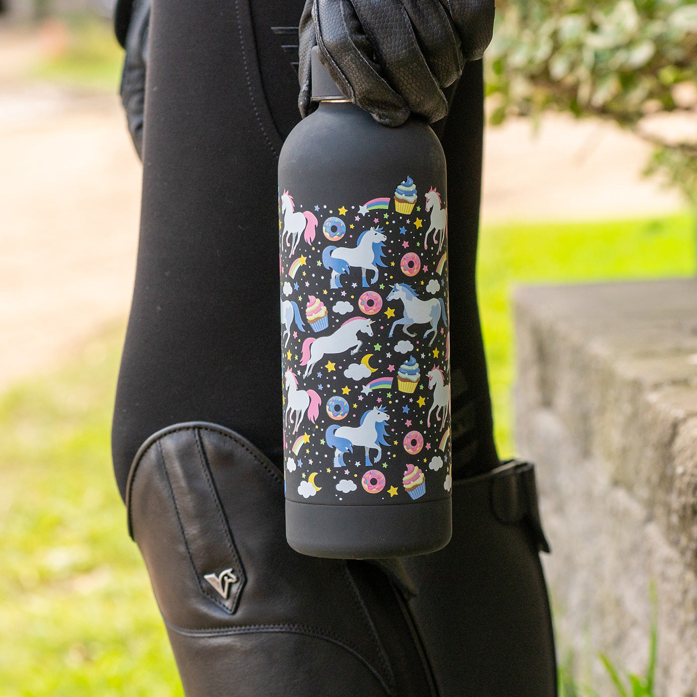 Bouteille d’eau en acier inoxydable avec bouchon à vis. Parfaite pour les déplacements et les journées à l’écurie. Design Space Ponies pour un style équestre amusant!
