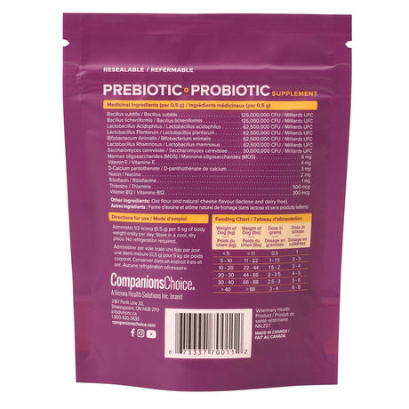 Companion's Choice Prebiotic et Probiotic Poudre Supplément pour animaux de compagnie 125 g