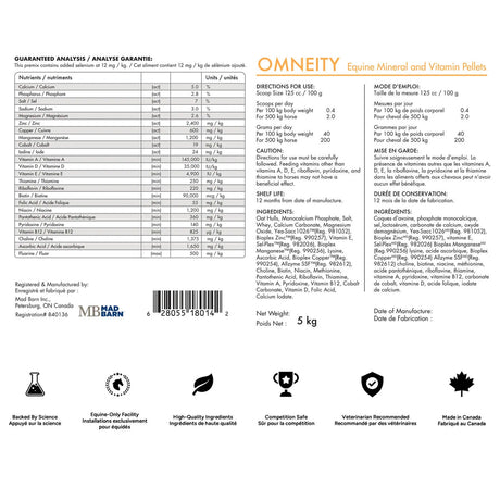 Granulés de vitamines et minéraux pour équidés Mad Barn Omneity 5 kg
