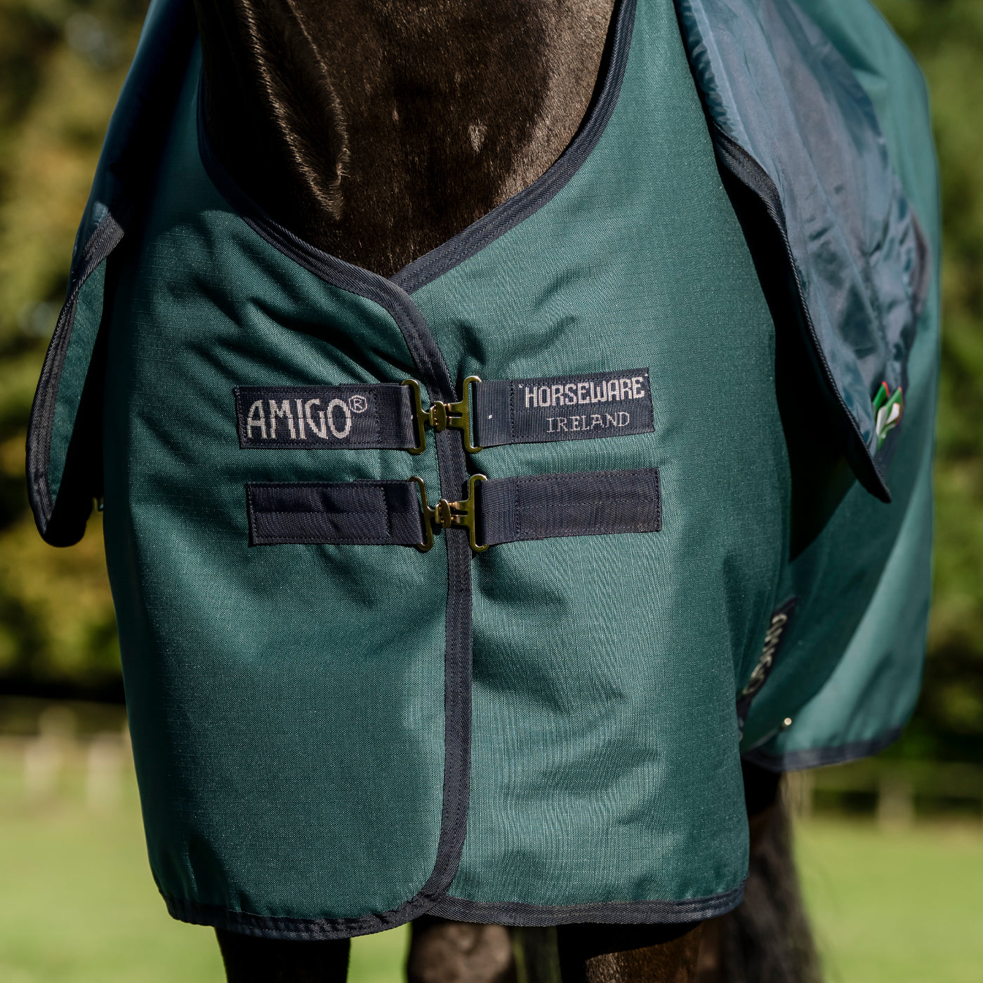 La couverture d'extérieur Amigo Ripstop Plus offre une protection et un confort supérieurs à votre cheval. Fabriquée en polyester Ripstop 900D, elle assure à votre cheval un confort optimal. Son tissu imperméable, résistant et durable, offre une excellente respirabilité, garantissant le confort de votre cheval quelles que soient les conditions météorologiques. Sa fermeture avant droite et ses arches pour les pattes avant offrent une plus grande liberté de mouvement. Pour plus de polyvalence, elle est dotée d'une capuche amovible et de passants de doublure compatibles avec le système de doublure Horseware. Dotée d'une doublure en polyester brillant, antistatique et antibactérienne pour un confort optimal et une apparence soignée, elle est équipée de deux sursangles croisées, d'une sangle de queue et de passants de sangle de cuisse optionnels pour un ajustement parfait.