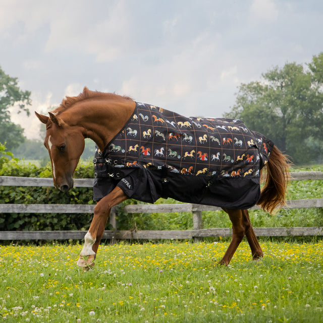 La couverture de pluie Supra offre une protection optimale contre les intempéries ! Imperméable et respirante, elle est sans coutures arrière. Doublée en nylon 210 deniers et extérieure 600 deniers, elle assure le confort et le sec de votre cheval. Elle est équipée de sursangles croisées, de fermetures à double boucle à l'avant et de sangles de cuisse réglables.