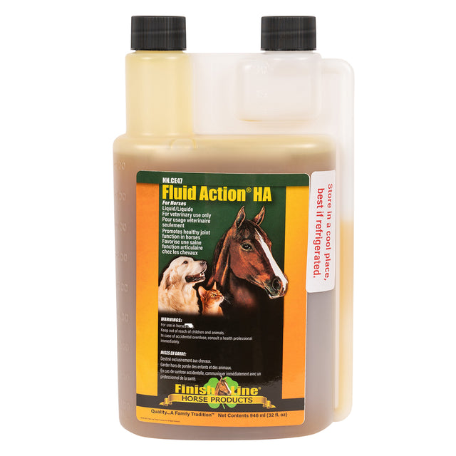 Finish Line Fluid Action HA est un complément liquide oral pour chevaux qui favorise le bon fonctionnement des articulations chez les chevaux. Liquide. 946 mL.