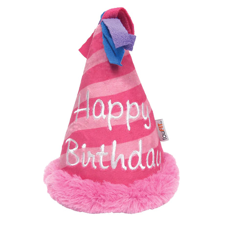 Jouet en peluche rose froissé pour chien avec chapeau d'anniversaire Fou Fou Brands