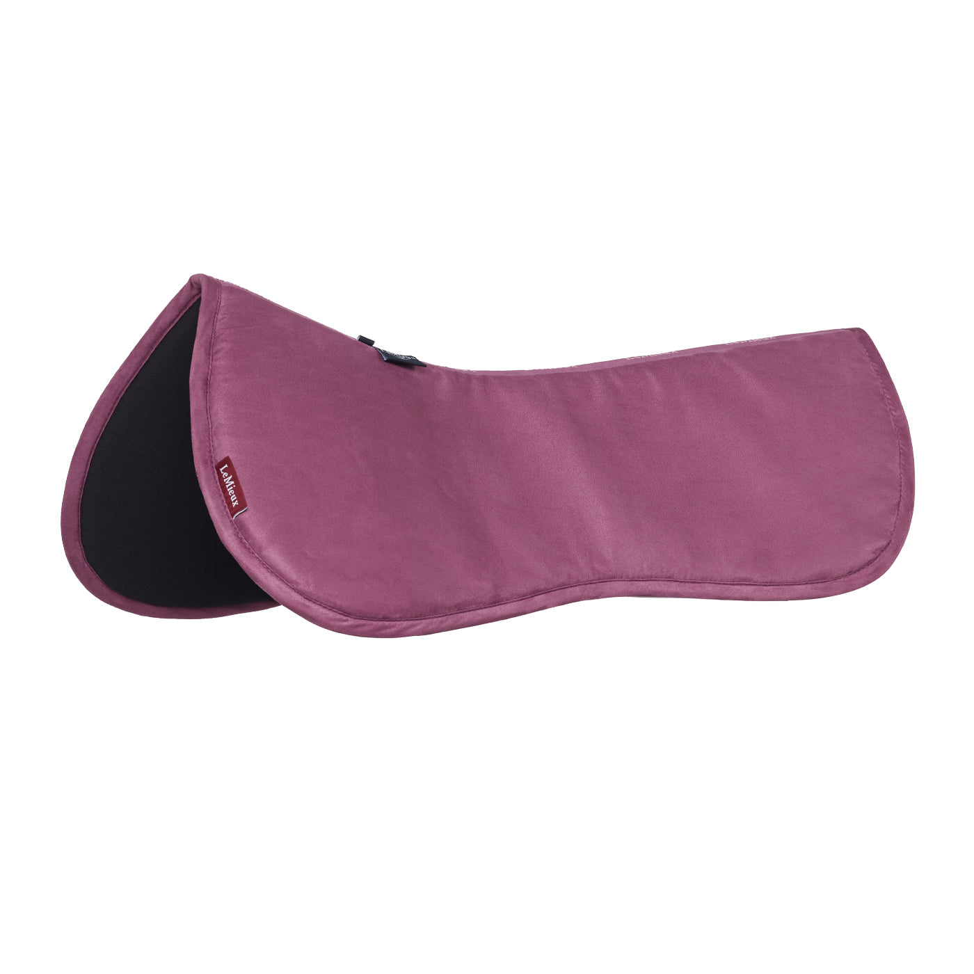 Tapis de selle demi-cuisse en daim couleur unie, garni de mousse et orné d'une bande dorsale siglée LeMieux. Bordure en daim confortable et doublure en maille respirante. Forme universelle compatible avec la plupart des selles.