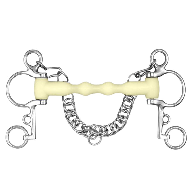 Un mors Pelham conçu en polymère durable et non toxique, pour un mors plus doux et un cheval plus heureux. Le parfum unique de pomme de Happy Mouth favorise l'acceptation du mors. Livré avec une embouchure à épaulement et des branches Pelham en acier inoxydable.