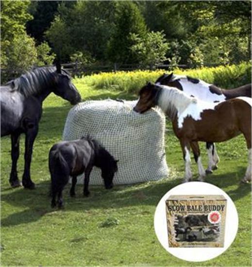 La solution parfaite pour nourrir les chevaux en balles rondes et carrées de toutes tailles ! Fabriqué à partir d'un filet de nylon sans nœuds doux et résistant avec des ouvertures de 1 ½ pouce et fixé avec une attache de sécurité spéciale, il entoure complètement la balle de sorte que les chevaux doivent tirer le foin à travers les trous du filet pour manger. Les chevaux agressifs et anxieux sont calmés en devant brouter et chercher leur foin, tandis que les chevaux en surpoids s'éloigneront du foin sans trop manger, aidant ainsi à normaliser leur poids. L'alimentation lente profite à la plupart des chevaux et peut être utilisée en toute sécurité car les trous sont trop petits pour que les chevaux puissent s'y coincer.