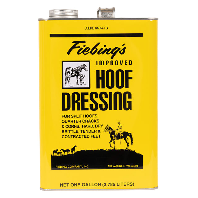 Depuis 1895, les éleveurs, les éleveurs, les opérateurs de scène et la cavalerie américaine comptent sur la qualité Fiebing. Utilisé régulièrement, il aide à maintenir des pieds sains, y compris les sabots fendus, les cors, les quarts de fissures et les pieds durs, secs, cassants, sensibles et contractés. Améliore également l'apparence du sabot, lui conférant une finition semi-brillante. 3,8 L/1 gal.