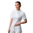 Le maillot de concours à manches courtes AA Elena est idéal pour les compétitions estivales. Ce maillot de concours perforé est ultra-respirant pour les journées chaudes. Les perforations forment le logo AA emblématique de la marque. Fabriqué en polyélasthanne extensible pour plus de confort, il est doté d'une plaque zippée dissimulée.