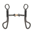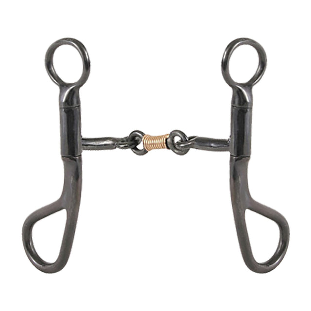 Le mors Colt en trois pièces Metalab à tige courte est doté d'un embout buccal à double articulation. Comme un embout à maillons français traditionnel, ce mors comprend une enveloppe de cuivre autour du maillon central. Le cuivre favorise la salivation et la douceur de la bouche du cheval. Les joues de 6" sont dotées d'un achat standard et d'une tige plus courte et inclinée. Ce mors léger et à faible effet de levier est un excellent mors de transition pour les jeunes chevaux qui montent d'un filet. L'action indirecte crée un effet de levier.